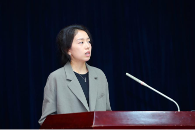 统计学专业2022级博士研究生曹纬代表学院全体在校研究生发言。她向学弟学妹们分享了近些年科研学习中的一些感受与体会。她认为搞好科研的三个关键词是:信心、从容和务实。同时祝愿大家在北航经管学院未来的生活丰富多彩,学有所长,再书华章。