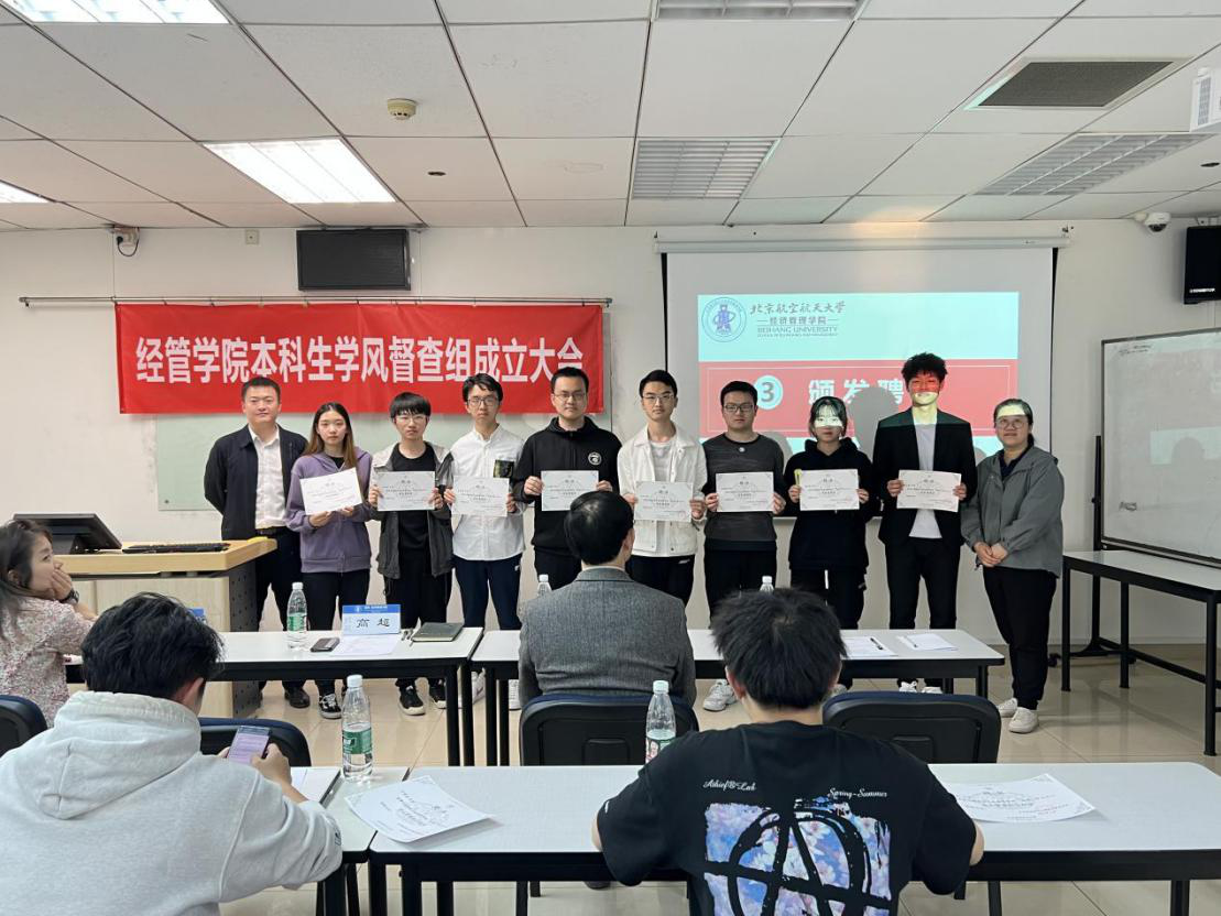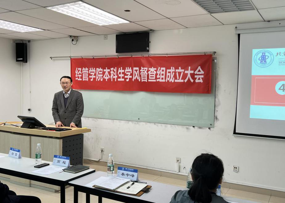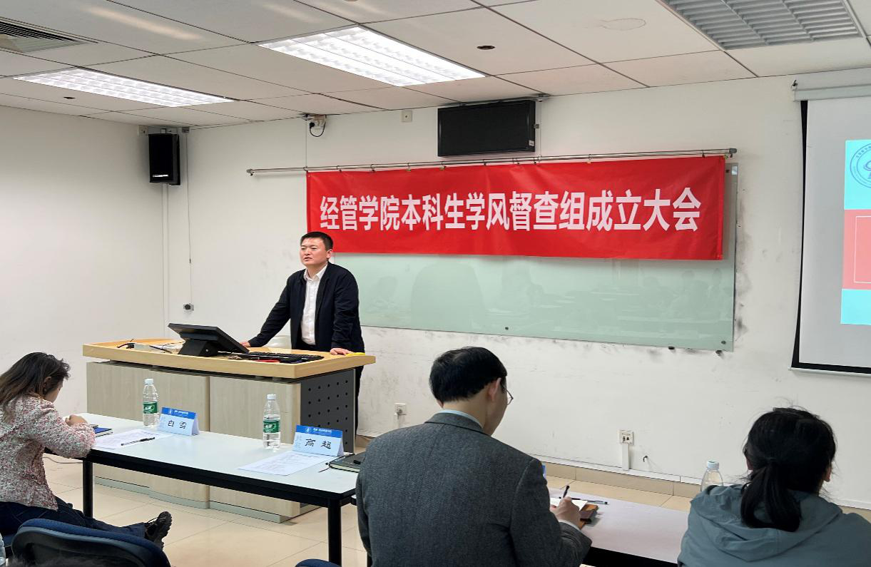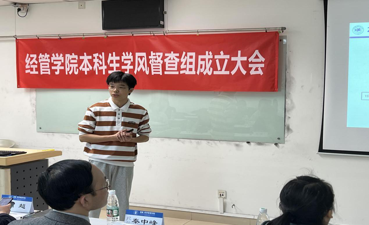 2022年4月13日,365上市公司官网本科生学风督查组成立大会在新主楼A1148教室召开。365上市公司官网教学副院长秦中峰、党委副书记高超、专职辅导员白雪、本科生教学秘书盛穆彤、“尚学”学业支持中心负责人杨耕铭、学业督查组的全体成员参加会议。