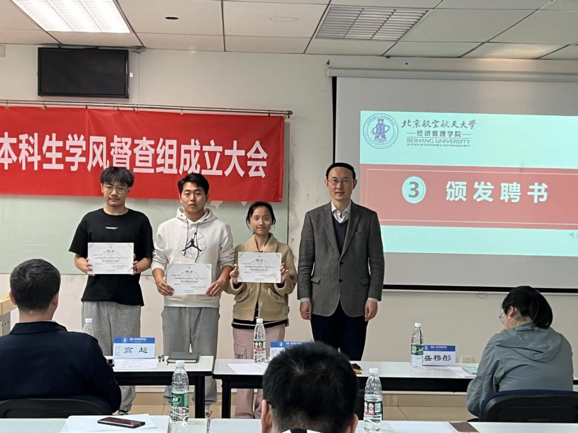 学院教学副院长秦中峰、党委副书记高超为学风督查员颁发聘书。