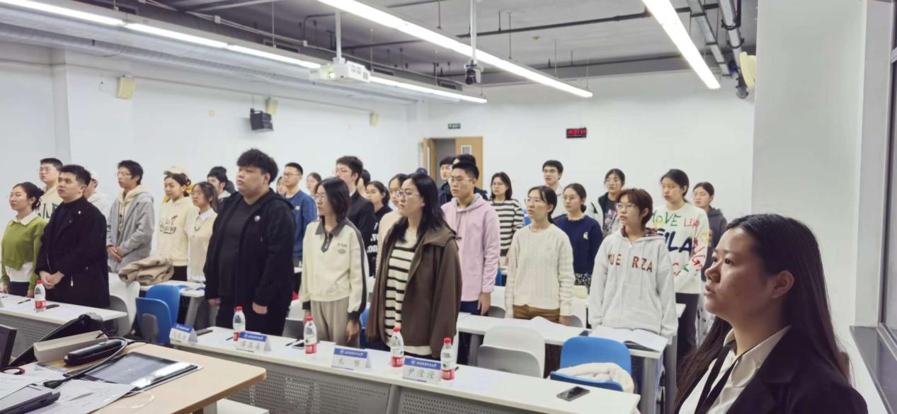 实践展示正式开始前,工作坊全体学员起立,面向党旗,庄严地齐唱国际歌。在国际歌振奋人心的歌词与激昂有力的旋律中,实践展示正式拉开序幕。