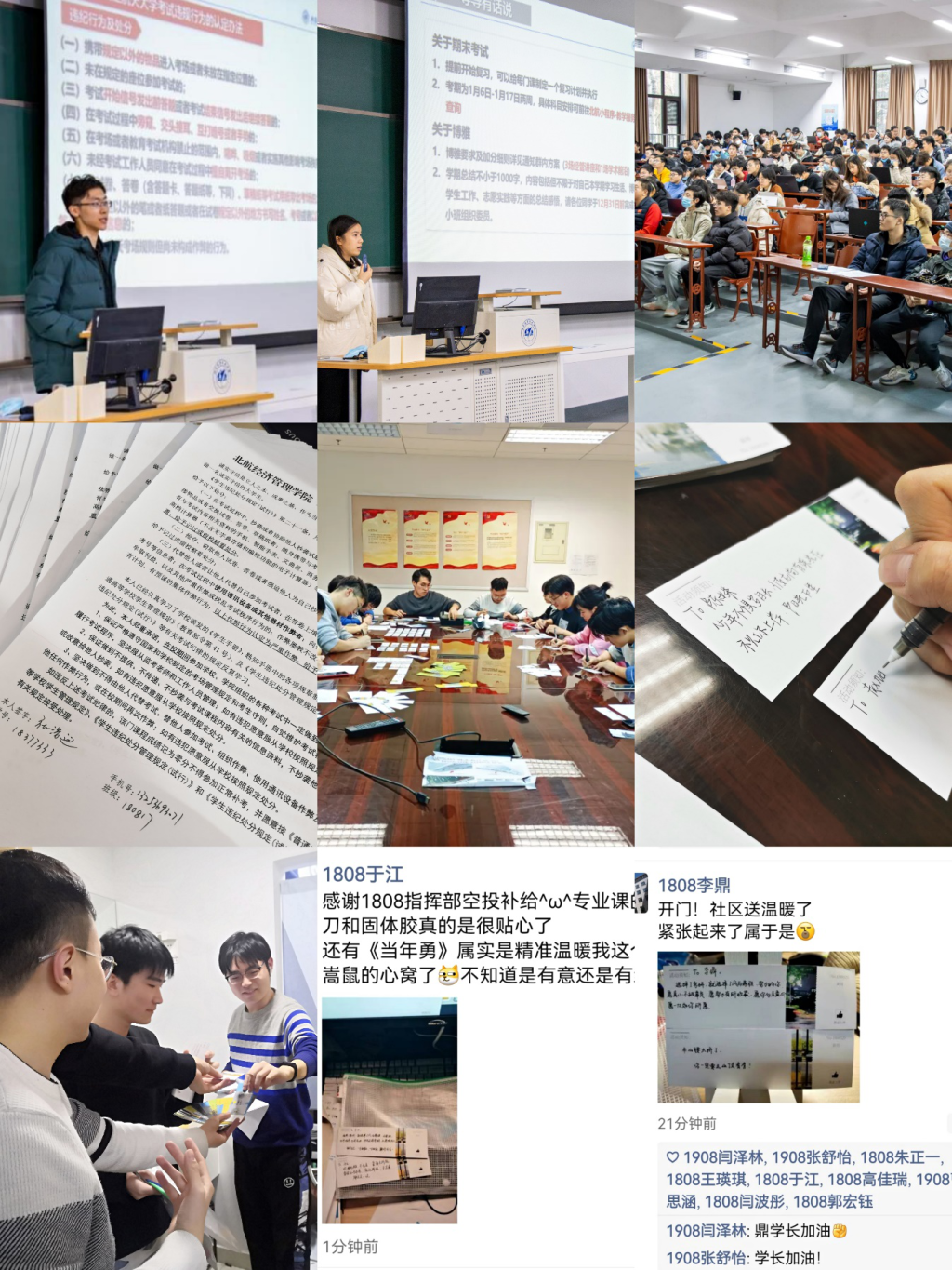 临近考研,365上市公司官网为考研学子准备了考研文具贴心礼包和定制“打气券”,辅导员和同学们一起手写祝福语,为考研学子打气加油。12月9日晚,辅导员走访学生宿舍,亲手分发“贴心礼包”,并提醒同学们合理安排作息时间,保持良好心态。一字一句的祝福,体现出学院对考研学子细致的关怀和殷切的期盼,同学们在收到礼包后也纷纷发朋友圈表达对学院的感谢和对考研上岸的期待。