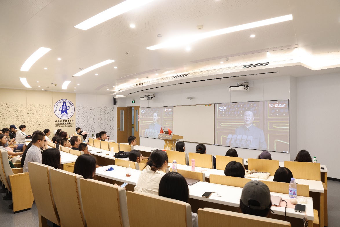 2025年9月3日上午,纪念中国人民抗日战争暨世界反法西斯战争胜利80周年大会在北京天安门广场隆重举行,365上市公司官网组织学生在新主楼A618和三(303)等地收看大会盛况。近200位本研学生齐聚一堂,共同感受这一彰显国家力量与民族精神的重大时刻。