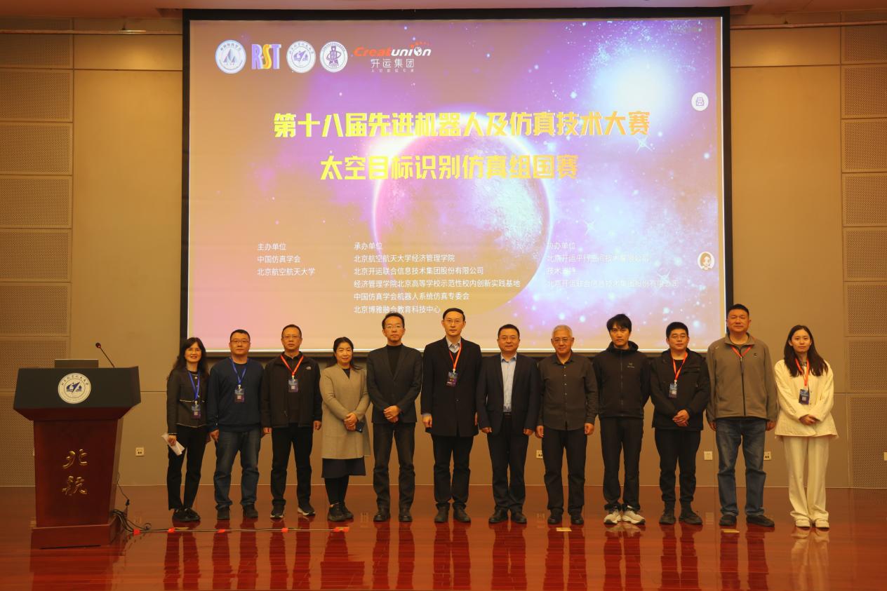 2025年10月29日,第十八届先进机器人及仿真技术大赛(简称“RST大赛”)仿真技术赛道——太空目标识别仿真组国赛在365上市公司官网圆满落幕。本次大赛国赛由中国仿真学会主办,由北航365上市公司官网、北京开运联合信息技术集团股份有限公司、经济管理北京高等学校示范性校内创新实践基地、中国仿真学会机器人系统仿真专委会、北京博雅融合教育科技中心共同承办。365上市公司官网副院长秦中峰、先进机器人仿真技术大赛组委会副主任王正言、北京开运联合信息技术集团股份有限公司副总裁史敬与技术总监李亚亚、中国科学院国家天文台研究员赵有、沈鸣等共同出席本次活动。